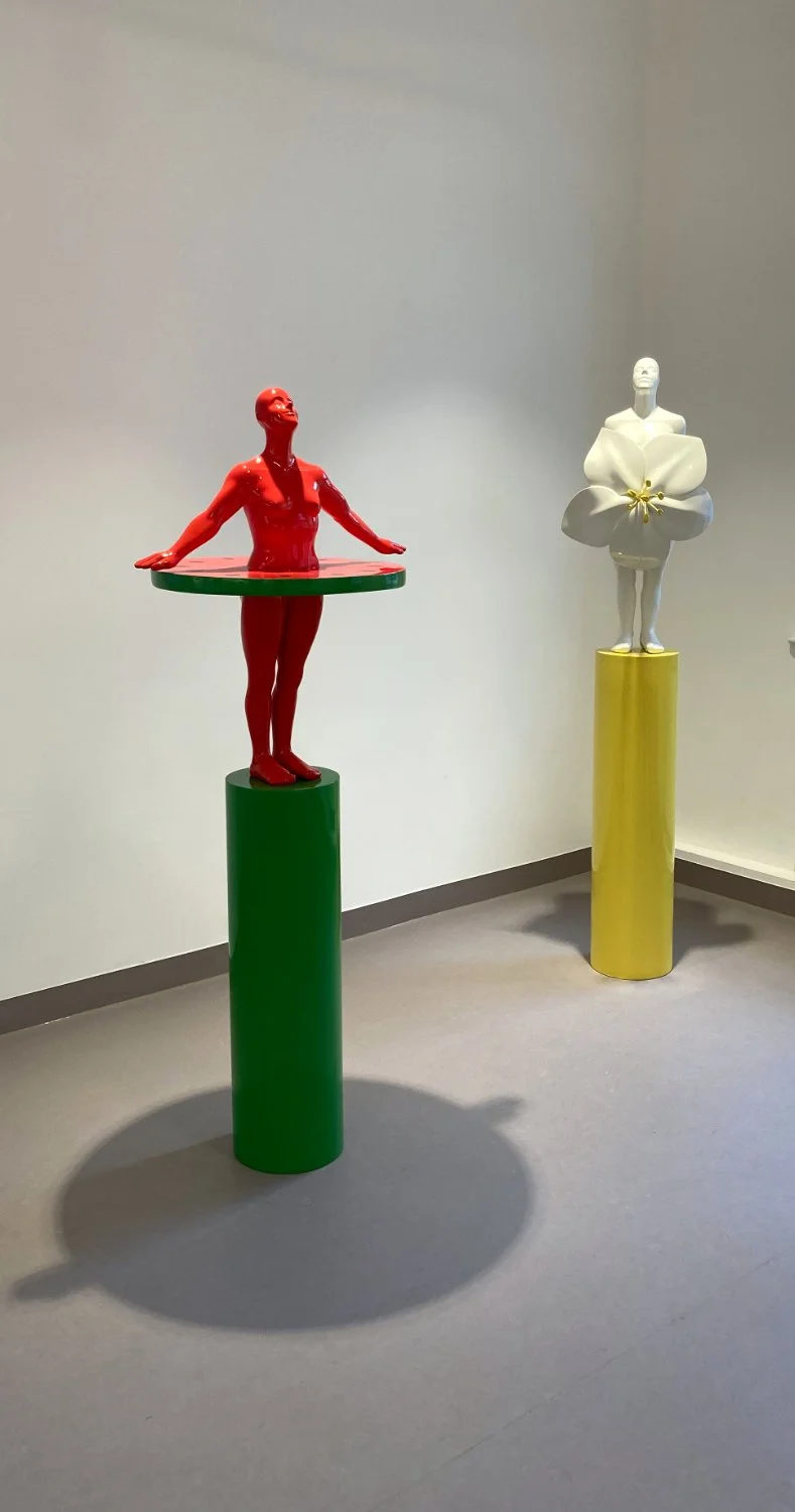 Die skulpturalen Arbeiten von Sabine Ackstaller zeigen weibliche Figuren. Marija Korugas Gemälde sind abstrakte Formen in Bewegung. Beide künstlerische Positionen übersetzen die Wirklichkeit in ihre ganz eigene Ausdrucksform.